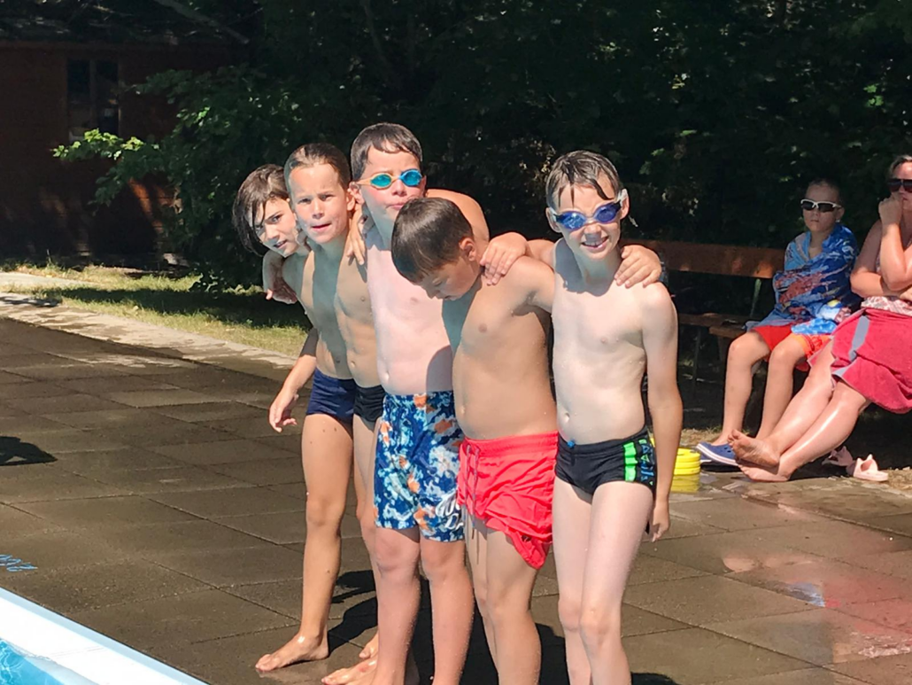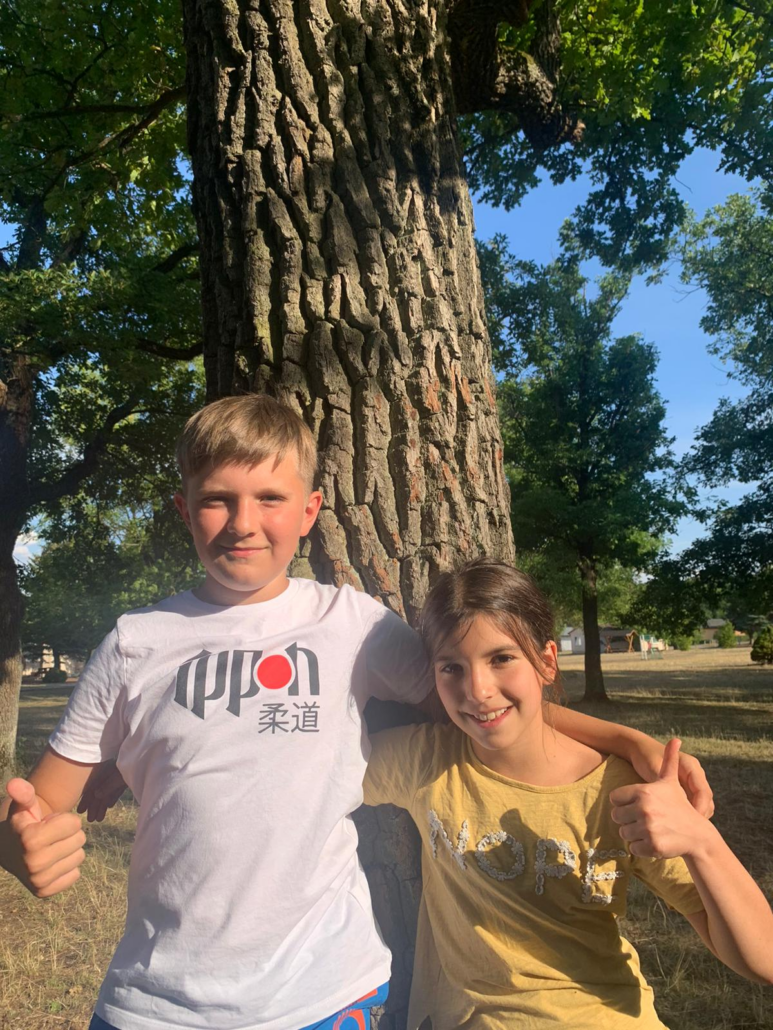 Heute begann der Tag wie immer mit Frühsport. Nach der Anstrengung gab es erstmal Frühstück für unsere Judokas Eowyn (10) und Erik (11), die 8 Uhr vorbildlich zum Frühsport erschienen sind. Danach ging es für beide auf die Matte, wo Erik seine Gürelprüfung für den orange-grünen Gürtel absolvierte, welche Eowyn bereits am Vortag ablegte. Nach dem Mittag ging es für Erik und seine Freunde ins Freibad, da bei den höllischen Hallentemperaturen eine Abkühlung echt gut tut.