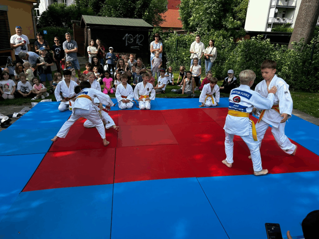 Am 05.06.25 fand im Zwergenland in Mölkau das Sommerfest statt. Unsere Judoka aus der Altersklasse u13/u15 waren zu einer Vorführung eingeladen und sollten den Jüngsten aus dem Kindergarten den Judosport näher bringen. Am Ende des tollen Programms gab es Applaus